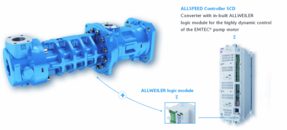 Allweiler bietet für Schraubenspindelpumpen eine neu entwickelte Drehzahlregelung an. „Allspeed“ kommt ohne Ventile aus, ermöglicht kleinere Pumpen mit kleinerem Motor.