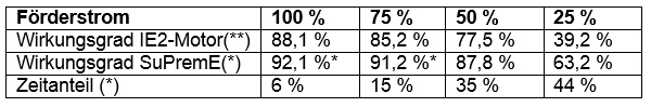 Ein 7,5 kw - supreme - motor hat bei voller Drehzahl and voller Belastung im Vergleich zum entsprechenden IE2-Motor bereits einen um bis zu Prozent höheren Wirkungsgrad。1 . beeinem Viertel der Drehzahl和infgedesen einem auf 25 Prozent reduzierten Förderstrom kander Vorteil bereits its zu 24 Prozent betragen。(siehe Tabelle)