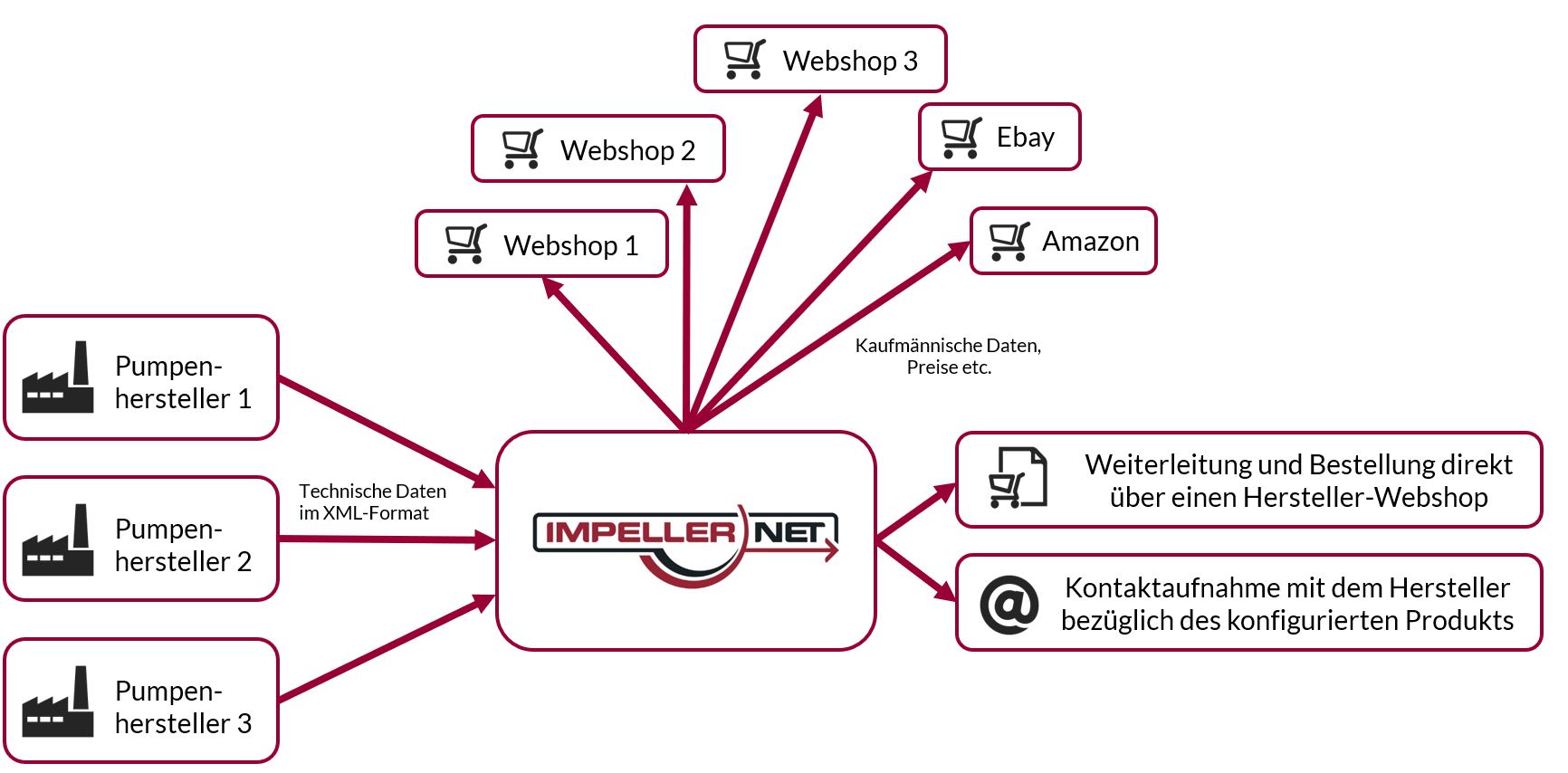 Der Anwender bekommt die Möglichkeit, eine oder mehrere Pumpen auszuwählen und diese miteinander zu vergleichen. Anschließend kann die gewählte Pumpe entweder über einen Webshop (z. B. Ebay, Amazon, spezielle Pumpenwebshops, Webshops der Hersteller) gekauft oder eine Anfrage direkt an den Hersteller gesendet werden.