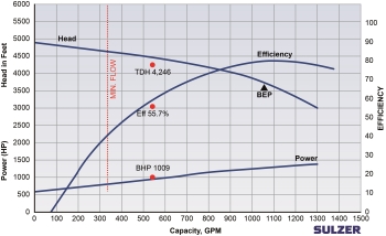 图1:泵的实际工作点,流量限制在设计点的58%。[Sulzer泵服务(美国)公司,现场技术服务,2017]